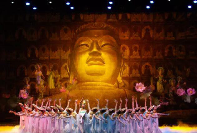 演出當晚,最具中國民族舞風韻的“金光千佛”首先亮相就贏得熱烈掌聲,觀眾席不時發出“太美了”的驚嘆之聲。隨后,反彈琵琶等曼妙舞姿在舞臺上逐一呈現,用唯美的肢體語言,再現了史詩般的敦煌仙境。在兩個小時的演出中,多變的舞美場景、豐富的舞蹈造型、唯美的舞姿將絲綢之路濃縮成一出扣人心弦的不朽傳說。