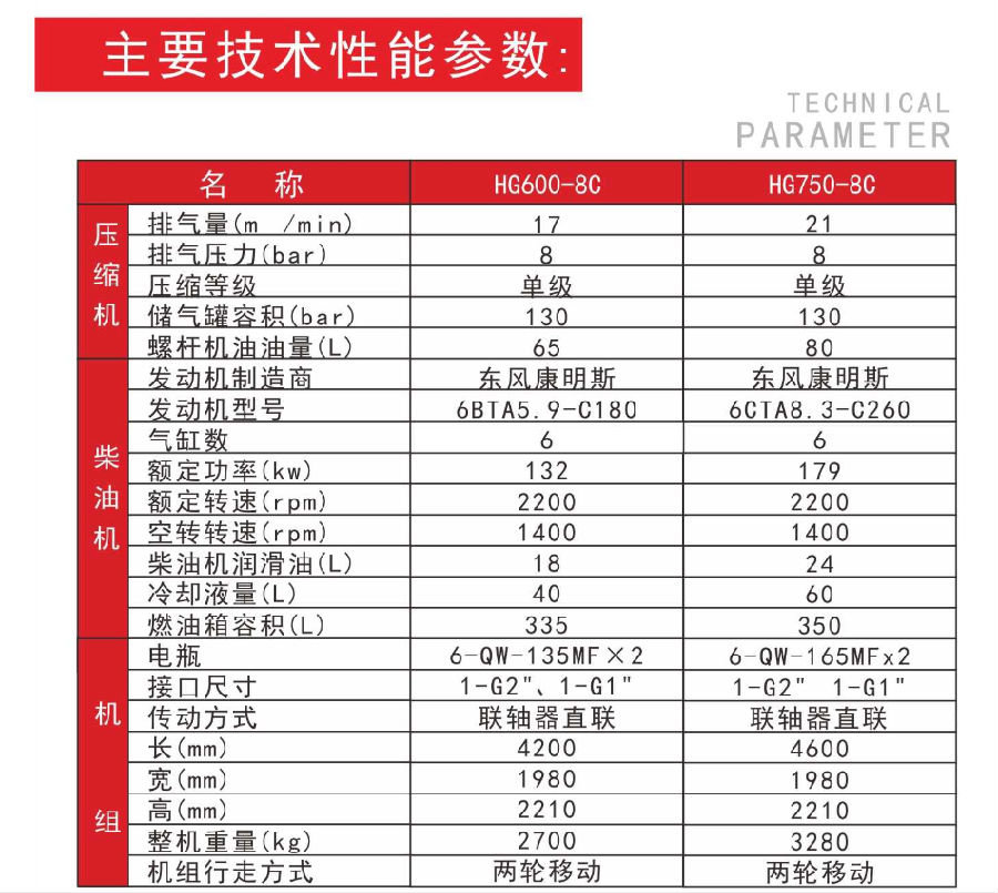 柴驅-HG系列中低壓移動空壓機(兩輪)