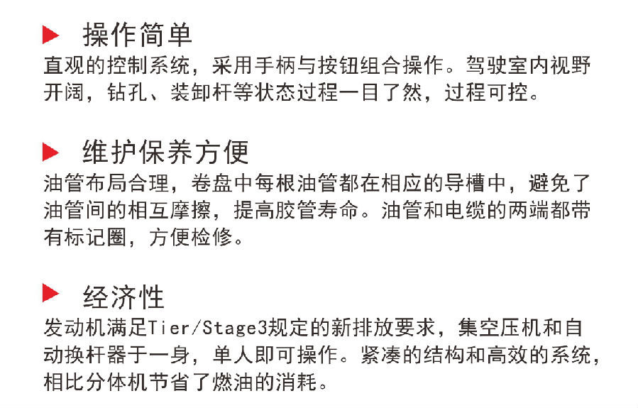 推薦孔徑范圍:110-148mmGIA B9秉承阿特拉斯.科普柯領先的技術和成熟的潛孔鉆孔方式,具備可靠的性能和高鉆孔質量,是一款經濟實用的履帶式露天潛孔鉆機。該產品性能可靠,維護成本低,廣泛適用于采石場和石灰石礦山等的鉆孔作業。