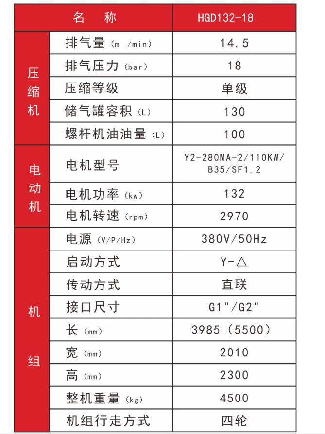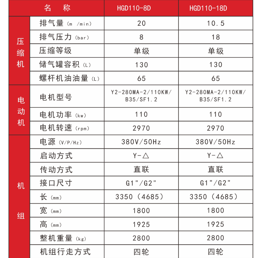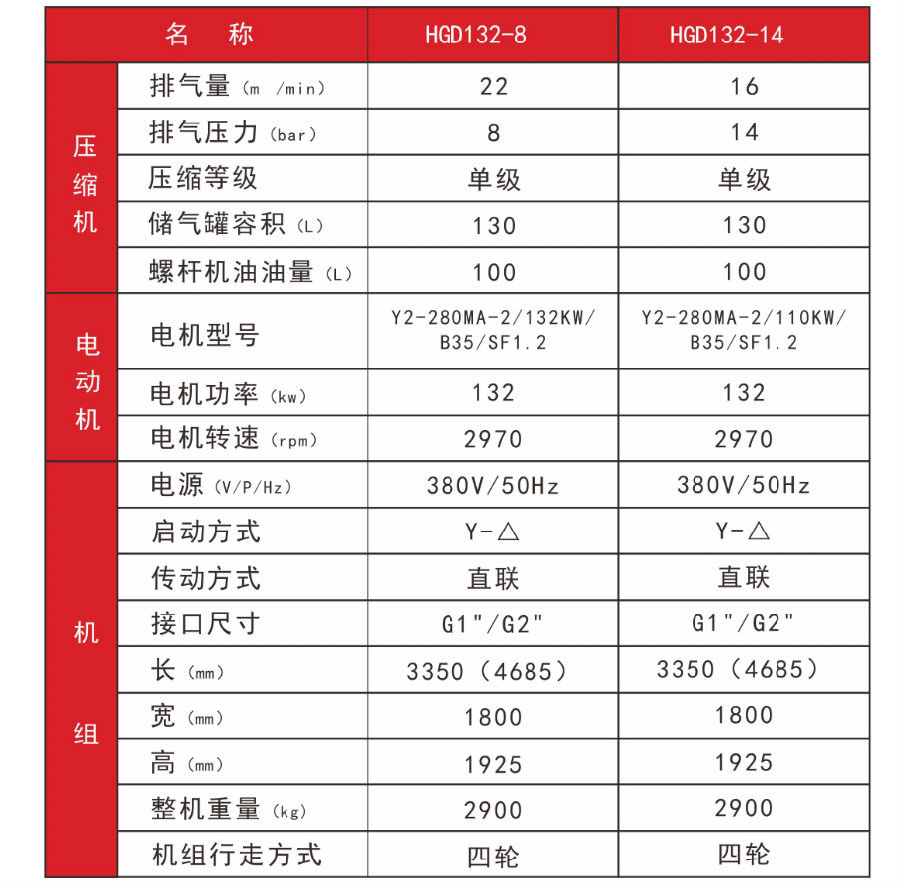 電驅-HGD中型移動空壓機系列 HGD110、HGD132 電移